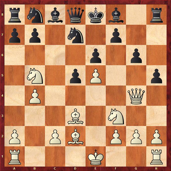 9.Ba4 Ng6 10.d4 Ba7 11.Re1 b5 12.Bc2 c5 13.d5 c4 14.Nf1 Nh5 15.Bg5